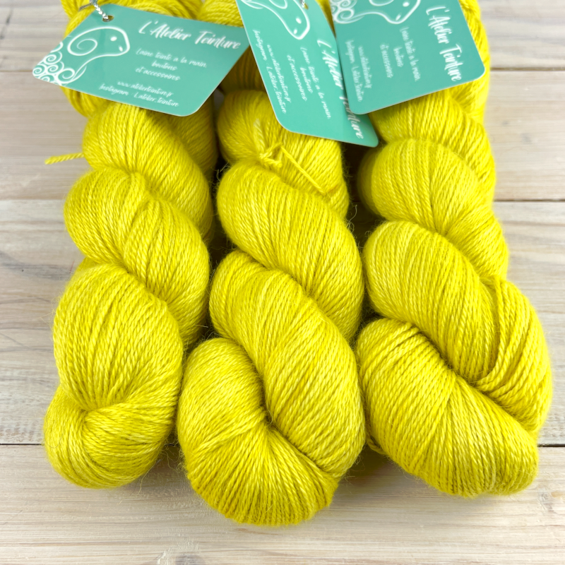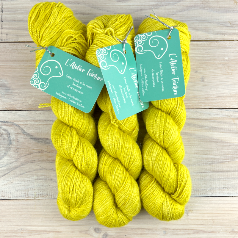 Ce fil est teint à la main en petite quantité par mes soins avec des colorants ayant un certificat GOTS, respectueux de l'environnement et sans métaux lourds. Au sein d'un même bain, les écheveaux peuvent présenter différentes variations. Pour un résultat uniforme, pensez à les alterner. Je vous recommande d'ajouter un peu de vinaigre pour éviter tout dégorgement lors du lavage de votre ouvrage et d'utiliser de l'eau froide.