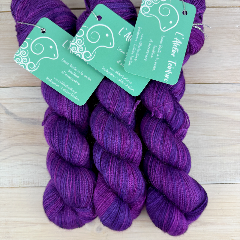 Ce fil est teint à la main en petite quantité par mes soins avec des colorants ayant un certificat GOTS, respectueux de l'environnement et sans métaux lourds. Au sein d'un même bain, les écheveaux peuvent présenter différentes variations. Pour un résultat uniforme, pensez à les alterner. Je vous recommande d'ajouter un peu de vinaigre pour éviter tout dégorgement lors du lavage de votre ouvrage et d'utiliser de l'eau froide.