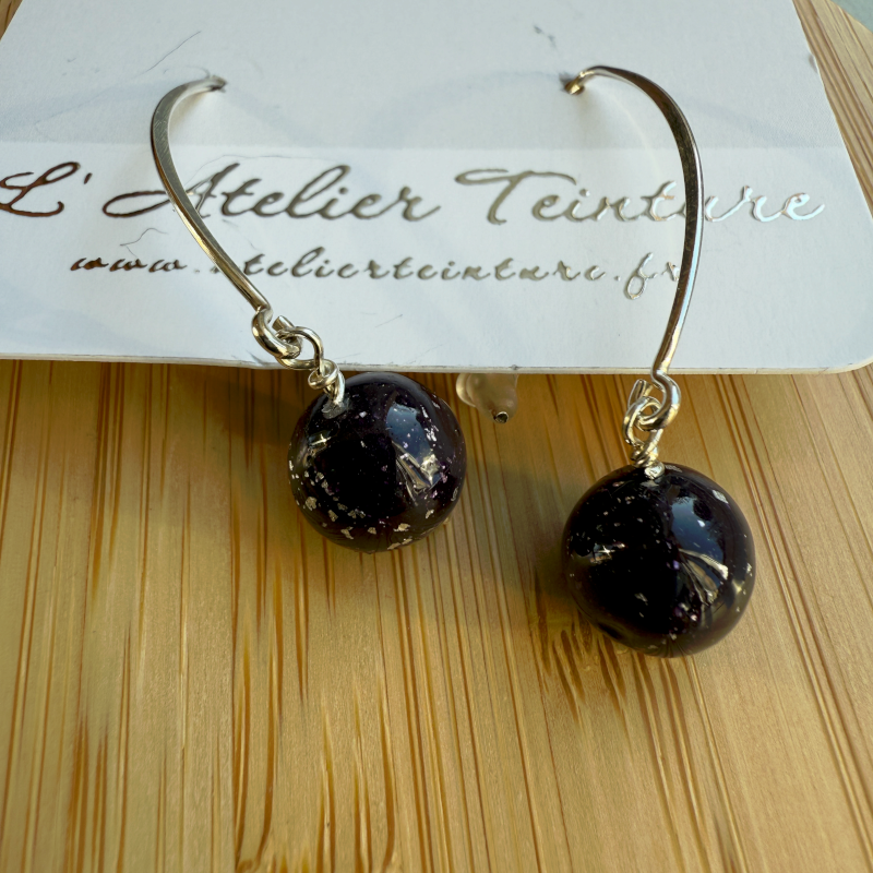 Les boucles d'oreilles sont scindées en deux catégories : les créoles et les crochets d'oreilles. Je fabrique les breloques en même temps que les boutons et j'utilise des apprêts de qualité. Les apprêts (créoles et crochets) sont soit en argent 925 soit en or laminé (gold filled).