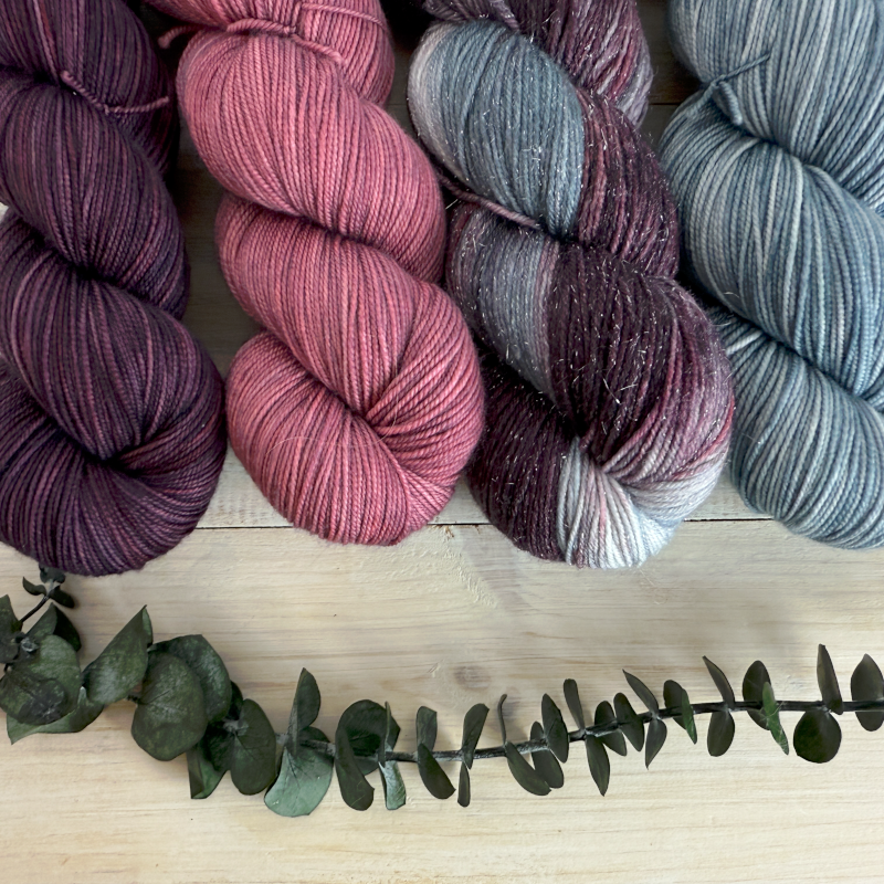 Je vous propose de choisir le coloris dans les bases suivantes : Bling Bling, Robuste, Pure fingering et DK, Pure Single, Délicatesse, Duvet, Tweed fingering et DK.